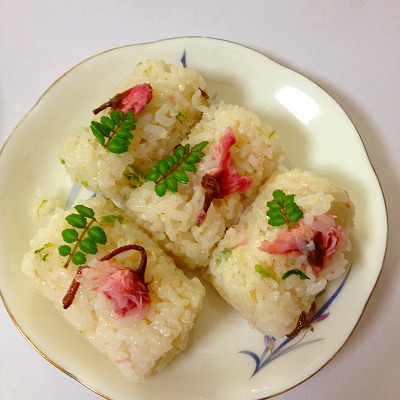 今朝は去年作った桜の花の塩漬けを使って「桜のお寿司」を作ってみました。