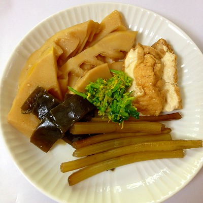 寿司飯は最初から炊き込み寿司にしました。たけのこの柔らかいところを小さく切って